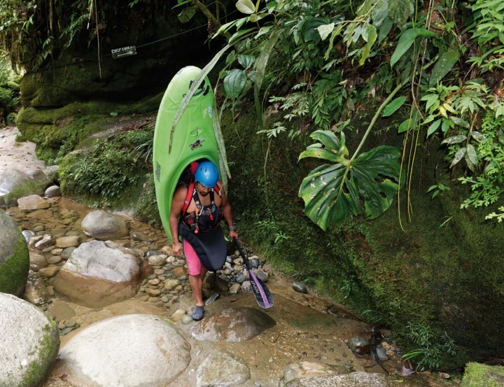 Mit dem °hf Turtle Back lassen sich Wildwasserkajaks leicht über längere Strecken bequem auf dem Rücken tragen. Das innovative Tragesystem eignet sich für alle Kajaks, die einen Mittelkeil vorne und zwei Griffe hinter der Luke haben.