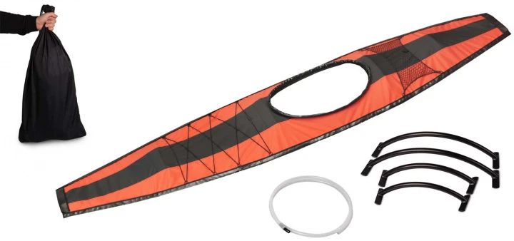 RU2/Solo = Spritzdeckenset Rush 2 mit einer Luke für Solopaddler, inkl. Streben und Plastik-Einschubring für den Süllrand.