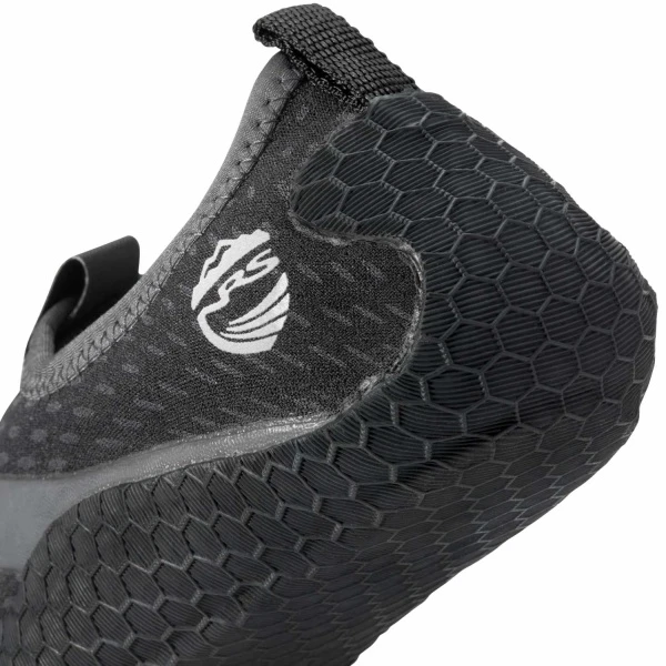 Die komfortabel geformte Zehenbox lässt Raum für das Bewegen der Zehen, um das Gleichgewicht und die Kontrolle zu erhalten. Das 1,5 mm dicke Neopren-Obermaterial sorgt für zusätzliche Wärme an kühlen Tagen. Mit weiter Öffnung, dehnbarem Neopren und Zuglasche am Knöchel für einfaches An- und Ausziehen. Flexibles, schlankes Design, um in enge Kajaks zu passen. 3 mm Neopren-Fußbett kombiniert mit einer 1,8 mm Gummilaufsohle für Schutz und optimalen Grip. 298 g.