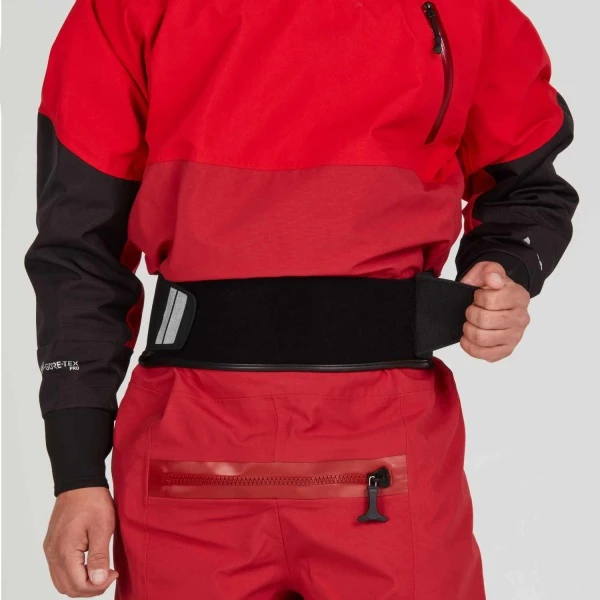 Der NRS Jakl Drysuit ist der ultimative Trockenanzug, geeignet auch für härteste Bedingungen. Die neueste Generation GORE-TEX PRO sorgt für hohe Dampfdurchlässigkeit bei größter Wasserdichtigkeit, original Cordura® Verstärkungen in allen wichtigen Bereichen verlängern die Lebensdauer. Die Heavy-duty YKK® Aquaseal™ Reißverschlüsse für den Einstieg im Rücken und als Toiletten-Zipper halten dauerhaft dicht und sind dabei sehr flexibel, der großzügige Schnitt lässt genügend Platz für warme Unterbekleidung. Die Latexmanschetten an Hals und Armen sind mit elastischen Neoprenbündchen gut geschützt, der Doppelkamin mit breitem Neoprenabschluss und beidseitig verstellbarem Klett dichtet wunderbar zur Spritzdecke ab. GoreTex Pro Füßlinge und eine kleine Brusttasche mit spritzwasserdichtem RV runden die Ausstattung ab.