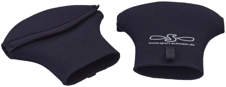 Kinder Paddelpfötchen aus beidseitig kaschiertem 3 mm Neopren, einfache Befestigung per Klett, die seitlich gut abschließende Einfassung verhindert das schnelle Eindringen des Wassers. Die Schlaufe erleichtert das Anziehen und kann zum aufhängen genutzt werden. Passen prima an die dünneren Schafte der Kindepaddel.
