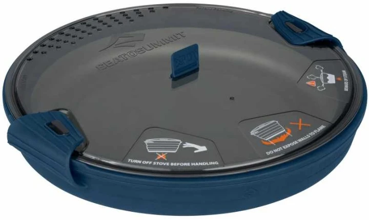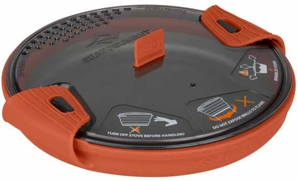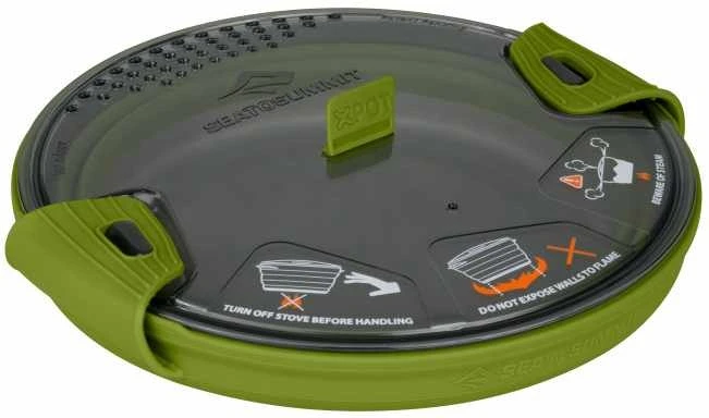 Zum Lieferumfang gehört ein durchsichtiger Deckel mit eingebautem Sieb. Zwei geriffelte Silikongriffe können an den Deckel geklemmt werden um den X-Pot sicher zu transportieren. Mit dem Deckel als Untersatz kann man den X-Pot einhändig tragen oder aus dem heissen Topf essen. Kaufen Sie sich einen zweiten Topf, eine Pfanne oder einen X-Pot Kettle dazu, so erhalten Sie ein kompaktes Kochsystem.