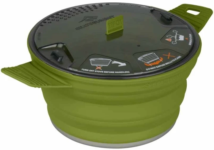 Der X-Pot ist ein faltbarer, voll ausgestatteter Kochtopf, der die Hitzeverteilung von Aluminium mit der Flexibilität von Silikon verbindet. Der hart-anodisierte Boden bringt Wasser schnell zum Kochen und der hohe Silikonrand ist exzellent beim Umrühren.