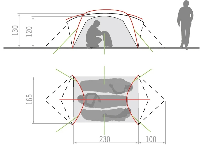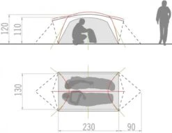 Wenn’s schnell gehen muß: leichtes 3-Seasons Zelt für Trekker und Backpacker. In kürzester Zeit ganz einfach aufzubauen durch die bewährte Mark-Wickelkonstruktion, selbststehend und somit einfach mit den im Lieferumfang enthaltenen Häringen zu spannen. Die Hutzen bieten regengeschütze Belüftung und können über die Verschlüsse an den Eingängen reguliert werden. Die beiden großen Apsiden sind gleichzeitig Ein- bzw. Ausgänge des Längsschläferzeltes.